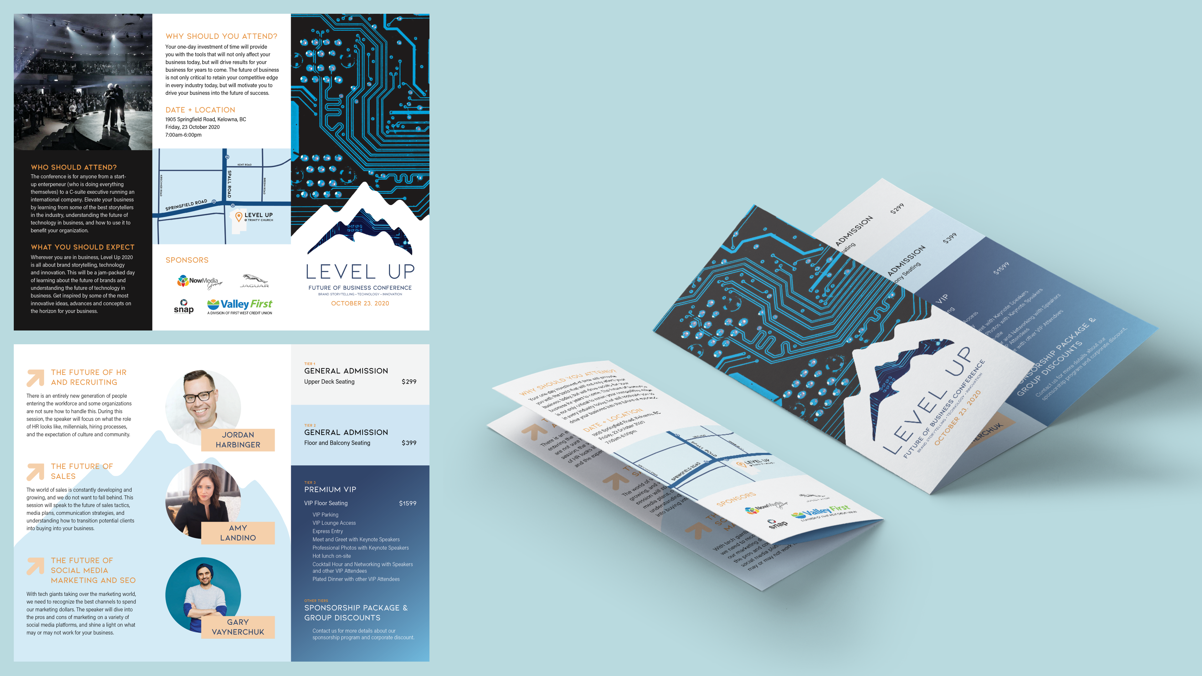 A print brochure designed for a business conference in Kelowna. The brochure includes content from online resources, including images edited to fit the design.